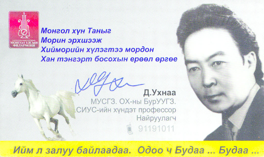 “Одон медалийг хадгалах хэрэггүй, зүүцгээ” хэмээн хэлдэг Д.Ухнаа гуайг танихгүй хүн Монголд байхгүй. Гэхдээ Д.Ухнаа гуай дээрх эрхмүүдээс бага зэрэг өөр, гэхдээ мэдээж ойролцоо утга агуулгатай учраас энд онцлогдсон болно. Цол гуншин нь Монгол Улсын Соёлын Гавьяат Зүтгэлтэн, ОХУ-Буриадын Урлагийн Гавьяат Зүтгэлтэн, СУИС-ийн хүндэт профессор, найруулагч Д.Ухнаа.
