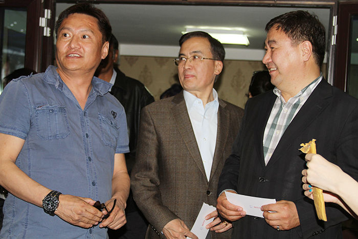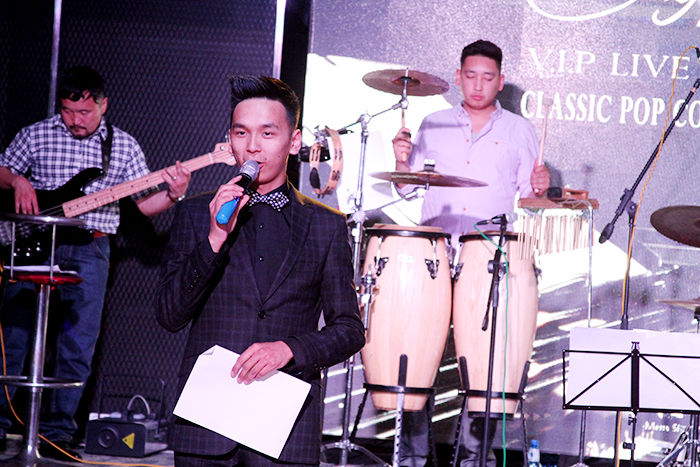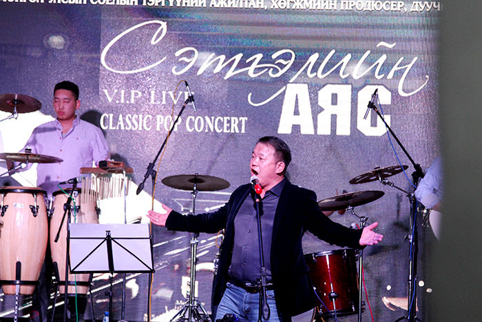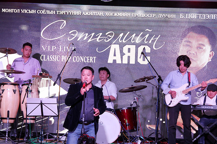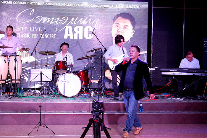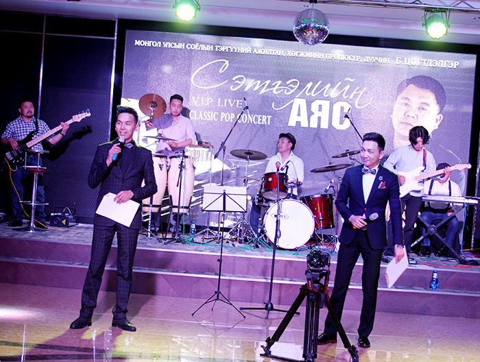 За тэгээд дэлхийн алдартай сүлжээ зочид буудал болох “Grand Hill” модны хоёрт нээгдсэнийг энэ орой мэдэв. Нийт 26 давхар шил толь болсон энэ зочид буудалд анх удаагаа хөл тавив. Арван долоон давхарт нь тоглолт болох юм. Лифт нь хүртэл мэдрэгчтэй, ухаалаг юм билээ, сүртэй сүртэй. Дээшээ гарлаа. Тоглолт эхлэх болоогүй ч дуучин маань жийнс өмсчихсөн бэлтгэлээ хийж байв. Гэргий нь болох улаан даашинзтай, дунд насны бидний тодорхойлдгоор царайлаг эгч зааланд нааш цааш гүйнэ. “Ямар байна, бид шөнийн 2 цаг хүртэл заалаа янзлаад” гэж нүдээрээ инээв. Орчин үнэхээр гоё. Хүмүүс ширээн дээр суугаад амтат дарс, ганц нэг 100 гр татсан шиг тоглолтоо үзэх нь. Б.Цогтдэлгэр тайзны ард нуугдаж сууж байгаад гэнэт гарч ирэхийг хүсээгүй бололтой. Орж ирсэн хүн бүртэй гар барьж хөтөлж очих шахам суудалд нь суулгаж байв. За тэгээд тоглолт эхэллээ.