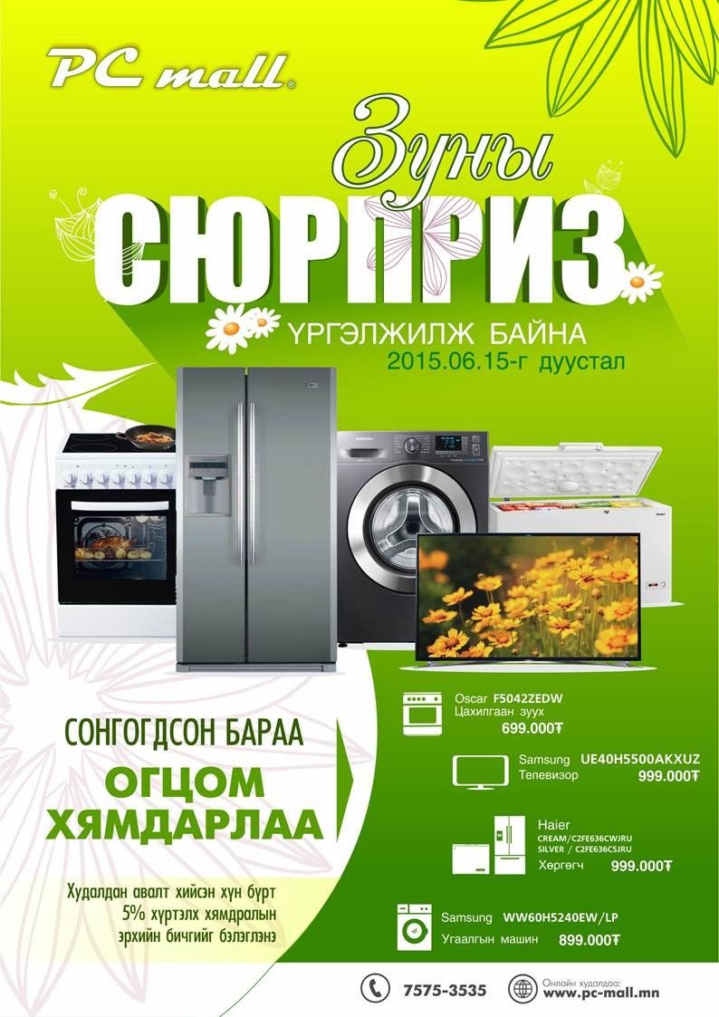 Өнгөрсөн 5 сарын хугацаанд PC mall сүлжээ дэлгүүр орон даяар 33 салбараараа Зуны СЮРПРИЗ-ээ задлаж онцлох бараа бүтээгдэхүүнээ ОНЦГОЙ үнээр худалдаалсан билээ. Хэрэглэгчдийнхээ хүсэлтээр Зуны СЮРПРИЗ-ээ энэ сарын 15ныг дуустал үргэлжлүүлж Онцолсон бараа бүтээгдэхүүнээ нэгэн зэрэг ОНЦГОЙ үнээр худалдаалахаар боллоо.
