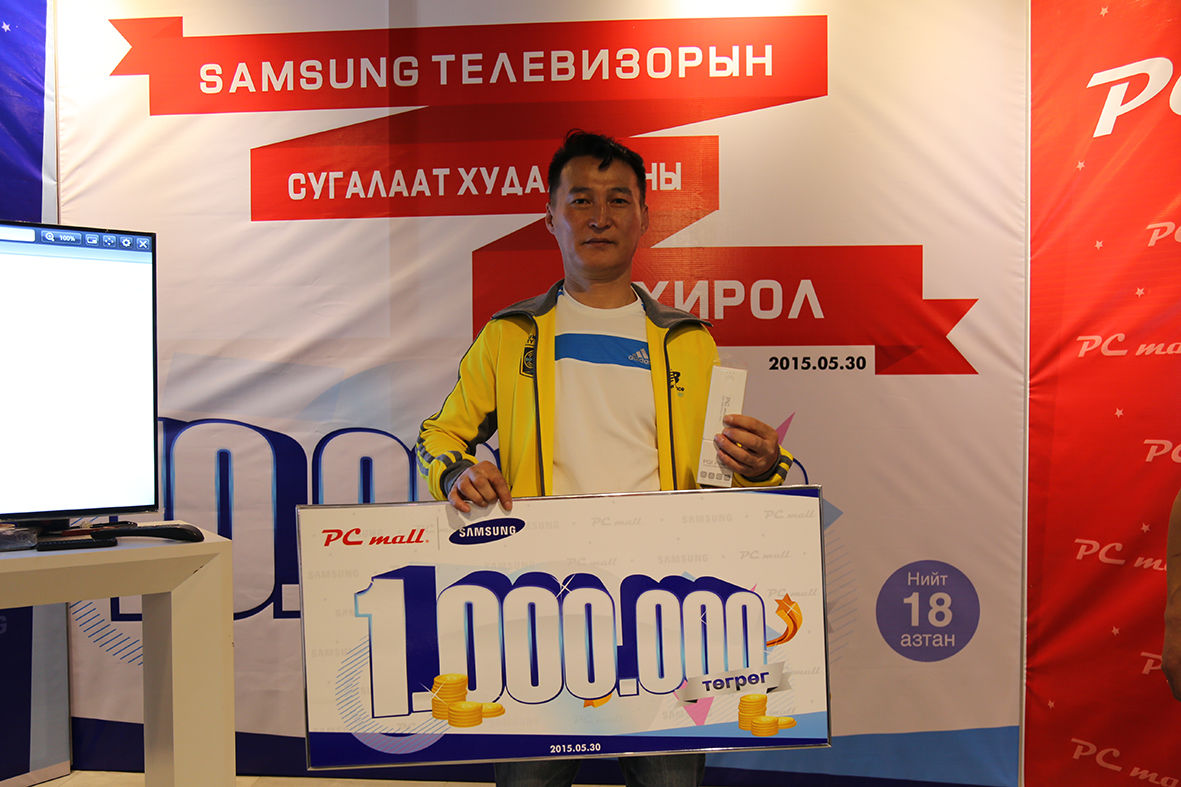 Салбартаа тэргүүлэгчдийн нэг PC mall сүлжээ дэлгүүр нь 10.000.000 сая төгрөгийн шагналын сан бүхий сугалаат худалдааг Samsung ТВ худалдан авагч дундаа 05-р сард зарлан явуулсан билээ. Харин энэхүү худалдааны азтангууд 5-р сарын 30-ны өдөр PC mall-ын төв салбарт тодорлоо.