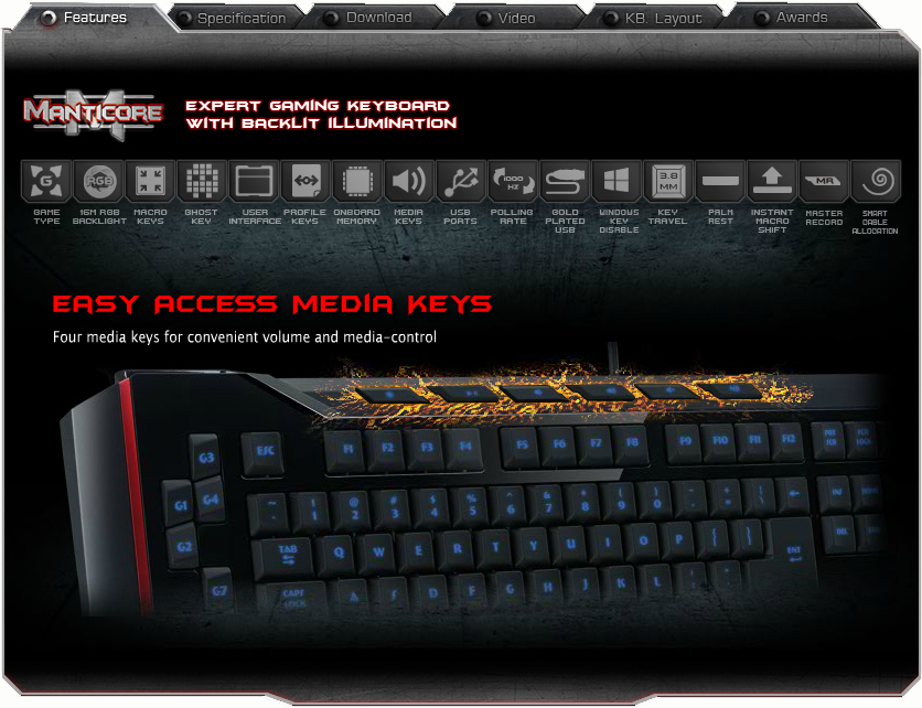 MANTICORE тоглоомын явцад тогтвортой 1000HZ хурдаар дамжуулж, хариу үйлдлийг 1мс-ээр үзүүлж тоглоомын үед илүү хурдан илүү сайн үзүүлэлтийг танд мэдрүүлэх болно. Энэхүү гар нь өндөр хурдны алтан өнгийн 1.8м урттай USB-ээр холбогдоно. Дээд талын хэсэгт 2 ширхэг USB порт байрлаж чихэвч, хулгана, спекэр г.м USB-н холболттой бүхий зүйлийг холбох боломжтой.