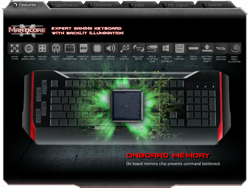 Энэхүү гарны бас нэг давуу тал бол төгс шийдэлтэй онцгой загвартай товлуурууд юм. SCORPION-оор 3 төрлийн профайл үүсгэж янз бүрийн тоглоомын тохиргоог хийж болно. MANTICORE гарны хавтан дээр санах ой бүхий чип байрлуулсан нь дээд хэсэгт байрлах 6 ширхэг хяналтын хэсгийг удирдах мэдээллийг хадгалах илүү хялбар болсон. 20 ширхэг ANTI-gHOST товчийг зэрэг дархад, gHOST эффект идэвхгүй болно.
