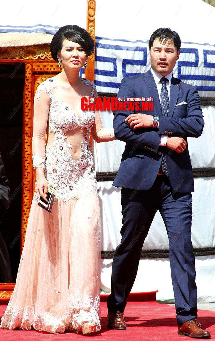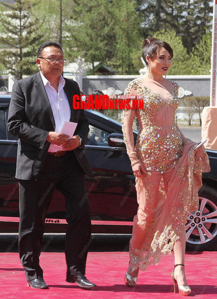 Харин Музагийн улаан хивснээ хүйс нь ил гарсан биеийн өнгөтэй иймэрхүү даашинзууд биед аятайхан зохисон ч гэлээ нэг алдаа эндээс харагдаж байгаа юм. Үсээ хэтэрхий овойлгож янзлуулсанаас болж энэ хоёр бүсгүй хоёулаа наснаасаа овортой харагдаж байх жишээний. Тэгэхээр улаан хивсэн дээр даашинзнаас гадна үс, туфль, чимэг аксессуар бүгдээрээ алхдаг гэдийг мартаж болохгүй гэсэн үг.