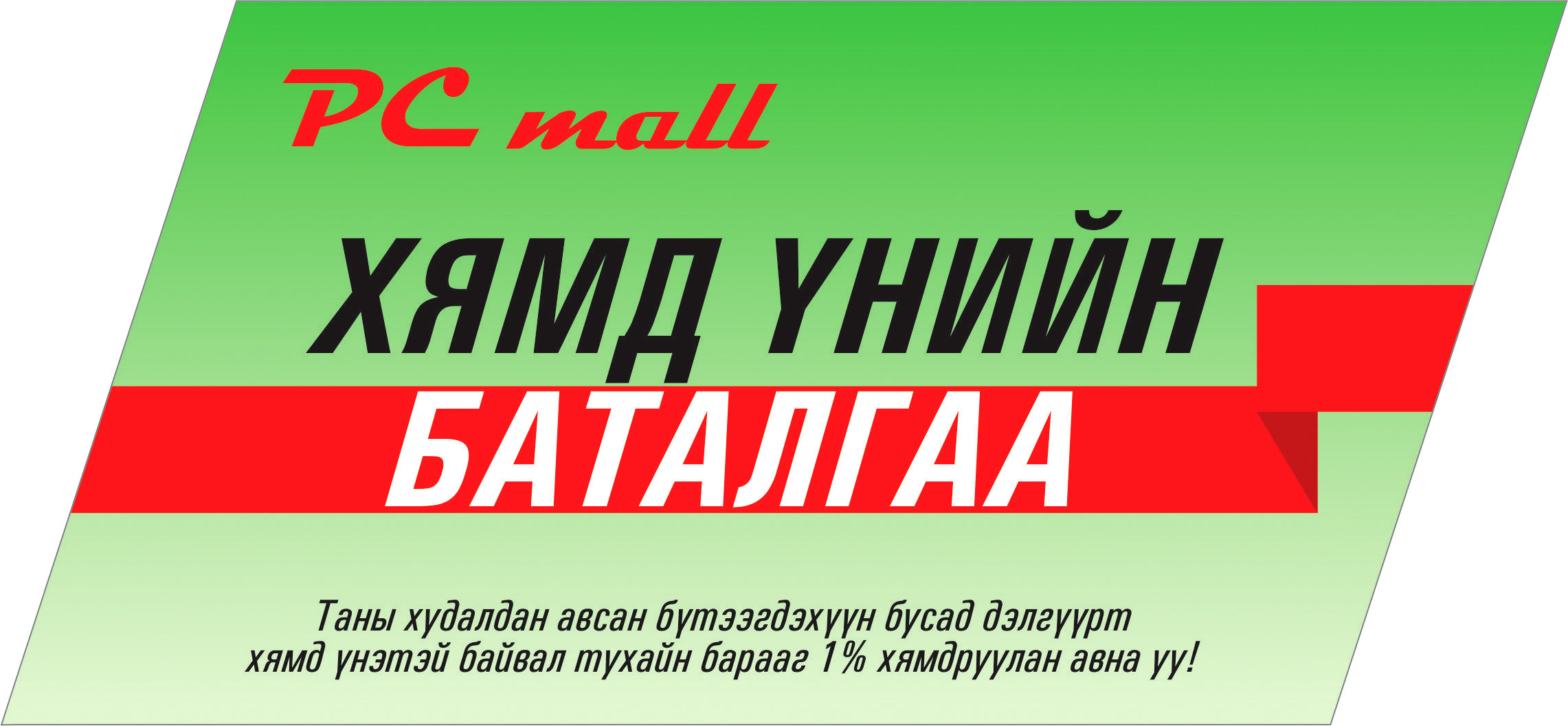 Дэлхийд алдартай олон брэндийн бараа бүтээгдэхүүнүүд үйлдвэрээсээ шууд PC mall сүлжээ дэлгүүрээр дамжин хэрэглэгчийн гарт нийлүүлэгддэг бөгөөд үүгээрээ илүү хямд мөн чанартай байх баталгааг хэрэглэгчиддээ олгодог. Хэрэв таны наадмын худалдаанаас худалдан авсан бараа бүтээгдэхүүн ижил төрлийн үйл ажиллагаа явуулдаг дэлгүүрт хямд байвал PC mall танд бэлэг урамшуулалын хамт үнийн дүнгийн зөрүүг буцаан олгох ХЯМД ҮНИЙН БАТАЛГААГ амлаж байна.