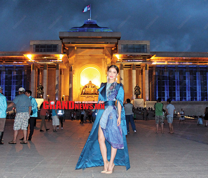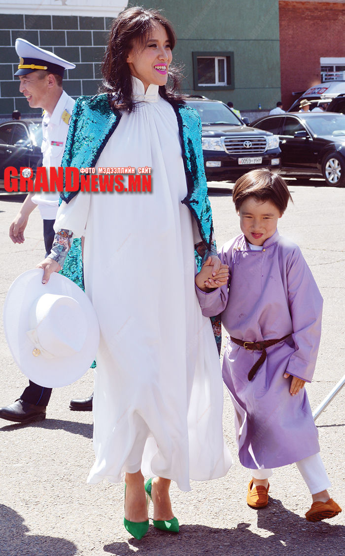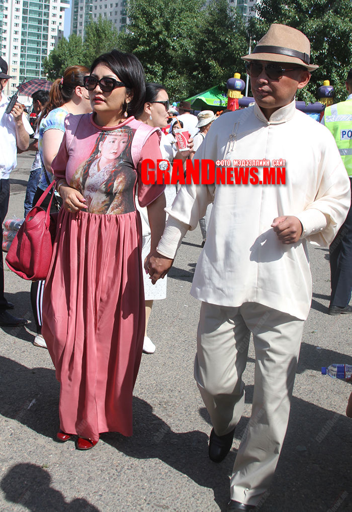 “Ingrid” рестораны Солонго хэмээх энэ бүсгүй хотын гангачуудын нэг. Гоёмсог торгон дээлээ цэнхэр торгон цув маягийн өмсгөлөөр тодотгож цэнхэр туфльтэй хослуулсан нь олны харцыг булааж байв. Наадмын талбайн чимэг болсон бүсгүйг рекламанд тоглуулах санал ирсэн ч байж мэдэхээр байна шүү. Гол нь хувцсаа хэрхэн амилуулж өмсөхөө энэ бүсгүй тун сайн мэддэг нь харагдсан.