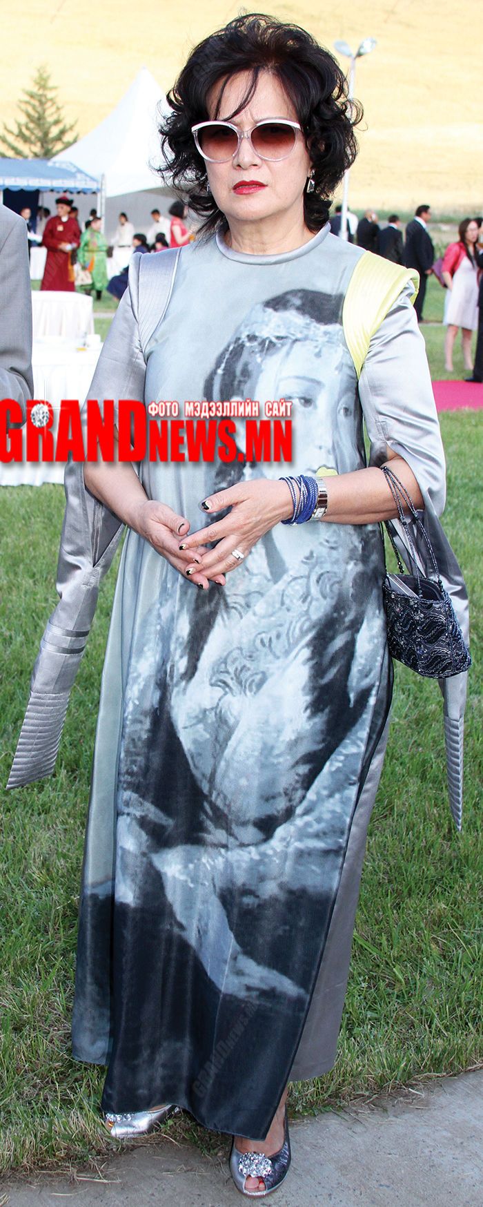 Үндэсний цэцэрлэгт хүрээлэнгийн захирал Б.Саранчимэг эко хатагтай нэрэндээ тохируулах мэт ногоон хувцас түлхүү өмсдөг. Харин энэ удаад ягаан торгон дээлээр гангарсан нь нэг л наалдахгүй байна шүү. Нас насны гоо үзэсгэлэнг илэрхийлэх үйлст хувь нэмэр оруулж хэв маягаа гайхуулдаг тэрбээр магадгүй ногоон өнгөнөөс залхсан ч байж болох юм. Тэгээд ч хүүхэн болгоны хүслэн янагийн ягаан өнгө байдаг хойно, нэг удаа ч болов охинлог болъё гэж бодсон юм байлгүй дээ.