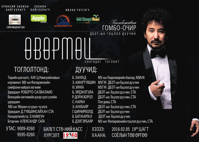 Тийм ээ,Түүний өвөрмөц цээл хоолойгоор хайр сэтгэл, эх орон, эжий аав, дэлхийн сонгодог дүрүүд тэр үдэш тайзнаа эгшиглэнэ. Энэ бол ӨВӨРМӨЦ сонгодогтоглолт.