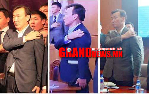 Төрийн сүлд дуу эгшиглэхэд Монгол хүн бүхэн зүрхэн дээрээ гараа тавьж төрийн сүлд дуундаа хүндэтгэл үзүүлдэг уламжлалтай. Харин С.Ганбаатарт зүрхгүй учраас ийн гараа тавьсан байх хэмээн шоглосон байна. Харамсалтай нь ингэж гараа тавьж хүндэтгэл үзүүлсэн шалтгаан нь С.Ганбаатар ноёнтон малгайгүй байсан учир гараа мөрөн дээрээ тавьсан байх. Яагаад гэхээр малгайгүй байвал гараа мөрөн дээрээ тавьдаг уламжлалтай гэдгийг цахимын зарим ухаалаг болжморууд жиргэжээ.