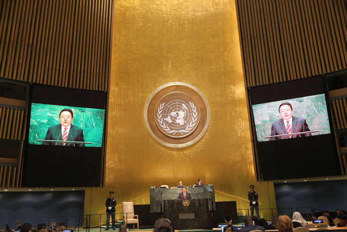 Ард иргэдийнхээ чөлөөт хүсэл зоригоор сонгогдон эх орныхоо төлөө зүтгэх болсондоо би бахархаж явдаг. Монгол Улс бол ардчилсан засаглалтай орон. Ерөнхийлөгчийн алба ээлжтэй. Миний бүрэн эрхийн хугацаа ирэх жил дуусна. Монгол Улсын Ерөнхийлөгчийн хувьд НҮБ-ын Ерөнхий Ассамблейн чуулганд сүүлийн удаа үг хэлж байна.