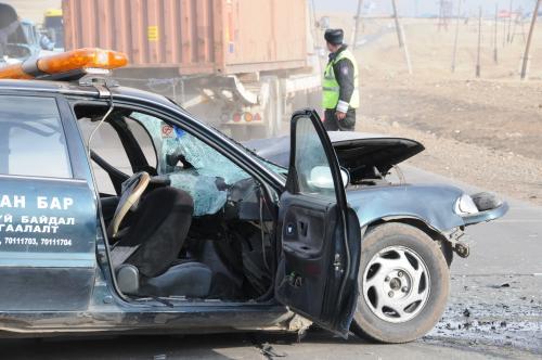 Орон нутагт: Дорноговь аймгийн Даланжаргалан сумын “Элдэв” багийн нутаг Даланжаргалан сумаас 35 км-т асфальтан замд H.Sonata-7 маркийн автомашины жолооч Д нь амины T.Prius маркийн Л жолоочтой автомашинтай мөргөлдөж, зорчигч 33 настай М-н амь нас хохирч, 4 хүн гэмтсэн.