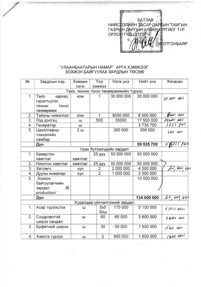 Нийслэлийн Засаг дарга Су.Батболдын захирамжаар энэ жилээс “Улаанбаатар намар” нэгдсэн арга хэмжээ зохион байгуулахаар болсон. Улмаар арга хэмжээний үеэр “Никитон”, “Камертон”-ы хамтарсан тоглолтыг зохион байгуулсан билээ. Тэгвэл тэдгээр хамтлаг дуучдад өгсөн мөнгө олон нийтийн анхаарлыг татаад байна.Учир нь хоёр хамтлаг тус бүр 50, 50 сая төгрөг авсан байгаа юм. Ингэхдээ 25 дуу дуулна гэжээ. Ингээд тооцоолохоор зөвхөн хоёр хамтлагт гаргасан төсөв л 100 хол даваад байна.