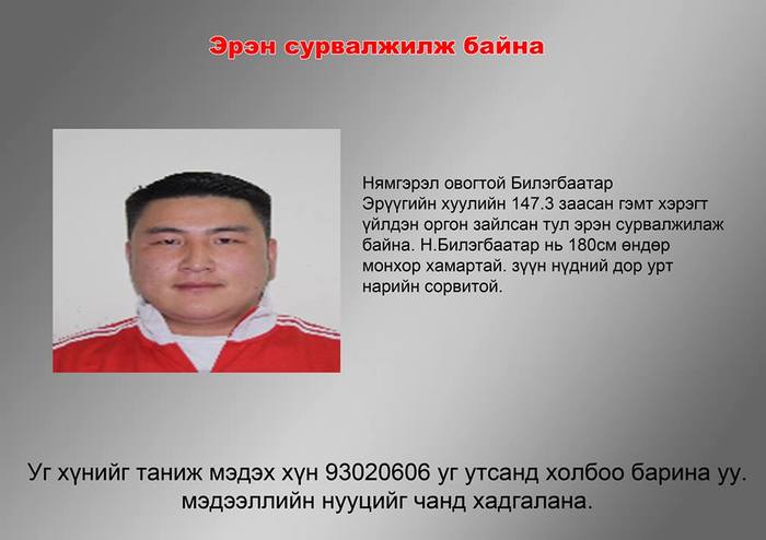 Тэгвэл Орхон Аймгийн цагдаагийн газар, Сүхбаатар дүүгийн цагдаагийн хэлтсийн алба хаагчид Эрэн сурвалжлагдаж байсан С.Галбадрах гэгчийг Орхон аймгийн нутаг дэвсгэрээс баривчилжээ. Түүнийг эрэн сурвалжлах ажиллагааг зогсоож мөрдөн байцаалтын ажиллагааг эхлүүлсэн байна.
