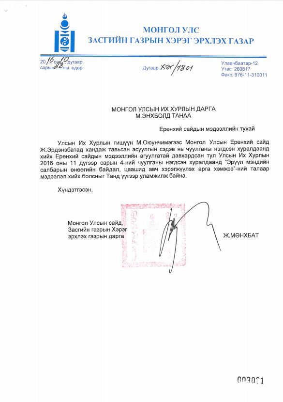 Монгол Улсын Ерөнхий сайд Ж.Эрдэнэбат өнөөдөр мэдээлэл хийнэ. Тэрбээр "Эрүүл мэндийн салбарын өнөөгийн байдал, цаашид авч хэрэгжүүлэх арга хэмжээ"-ний талаар мэдээлэл хийх аж.