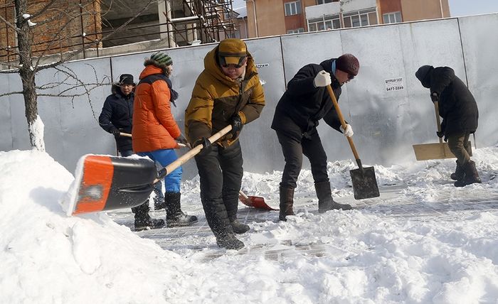 Нийслэлд их хэмжээний цас орж, сүүлийн жилүүдэд тохиогоогүй нөхцөл байдал үүссэнтэй холбоотойгоор хотын дарга С.Батболд нийслэлийн төр захиргааны болон төрийн үйлчилгээний байгуулллага, хувийн хэвшил, иргэдийг энэ амралтын өдрүүдэд цас цэвэрлэж, зам талбайн хальтиргаа гулгааг арилгах уриалга гаргасан. Энэ дагуу өнөөдөр хотын дарга С.Батболд, НИТХ-ын дарга Ц.Сандуй нараар ахлуулсан Нийслэлийн Засаг даргын Тамгын газар, НИТХ болон Засаг даргын хэрэгжүүлэгч агентлаг, харьяа газрын удирдлага, ажилтнууд гудамж талбайн цас цэвэрлэлээ.