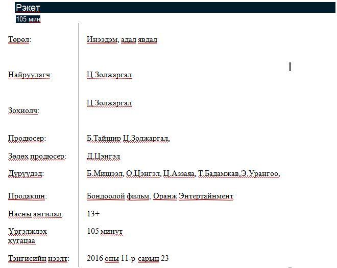 Монголын кино урлагийн шинэ залуу авъяаслаг, царайлаг жүжигчин бүсгүйчүүд болох Б.Мишээл, О.Цэнгэл, Э.Урангоо, Ц.Аззаяа, Т.Бадамжав, нар санаандгүйгээр түүхэн дурсгалт хөшөө сүйтгэн их хэмжээний өрөнд оржээ. Тэд харанхуй хонгилд сэрсэн бөгөөд үүнийгээ огт санахгүй байгаа гэнэ. Хаана байгаагаа ч мэдэхгүй, гэнэн цайлган таван охин энэхүү асуудлаа даван гарахын тулд санаанд оромгүй, хөгжилтэй аргуудыг туршиж үзэж байгаа нь ямар их аюул дагуулж байгааг та бүхэн 11-р сарын 23-нд бүх кино театруудаар гарч эхлэх Рэкет инээдмийн уран сайхны киноноос үзээрэй.