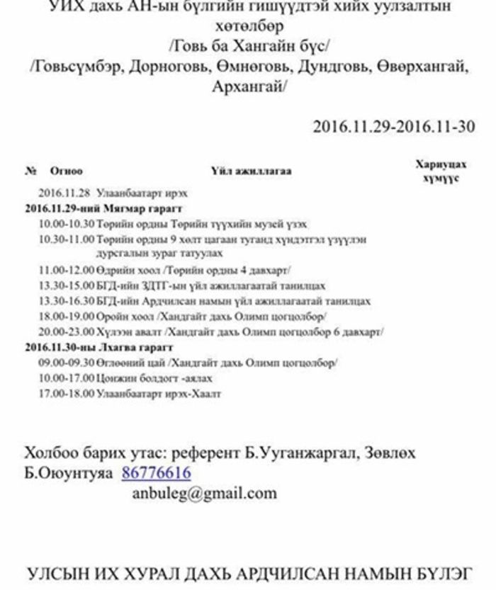 Их хурлын төлөөлөгчөөр сонгогдсон гишүүдийн нэрс нь нам дээрээ ирээгүй байгаа ч тэдгээр зориулсан меню бэлэн болжээ. Доорх баримтаас харвал УИХ дахь Ардчилсан намын бүлгийн дарга, Баянгол дүүргийн Ардчилсан намын дарга С.Эрдэнэ буюу “Шонхор”-ынхон “УИХ дахь Ардчилсан намын бүлгийн гишүүдтэй хийх уулзалт” нэрийн дор Говьсүмбэр, Дорноговь, Өмнөговь, Дундговь, Өвөрхангай, Архангай аймгийн намын гишүүдийг Баянгол дүүргийн ажилтай танилцуулангаа оройд нь Хандгайт дахь цогцолбортоо аваачин амраахаар хөтөлбөр гаргажээ. Орон нутгийн намынхнаа угтан дайлж, уулгаж идүүлэх гэж байгаа нь угтаа Их хурлын төлөөлөгчдийг “худалдах авах” гэсэн лобби гэж ойлгогдож байгааг тэдгээр анхан шатны намын гишүүд нь сэм ярилцаж байна