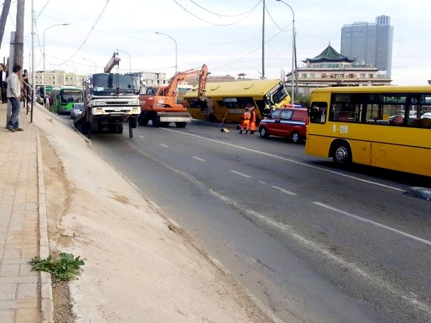 БЗД-ийн нутаг Энхтайваны өргөн чөлөө, 13-ын автобусны буудлын урд замд "Нийслэлийн зорчигч тээврийн нэгтгэлийн ОНӨААТҮГ-ын Daewoo BS маркийн автобусны жолооч Б нь мөн компанийн JEA 800 D маркийн троллейбустай мөргөлдөж зорчигч 46 настай эмэгтэй Н гэмтжээ.