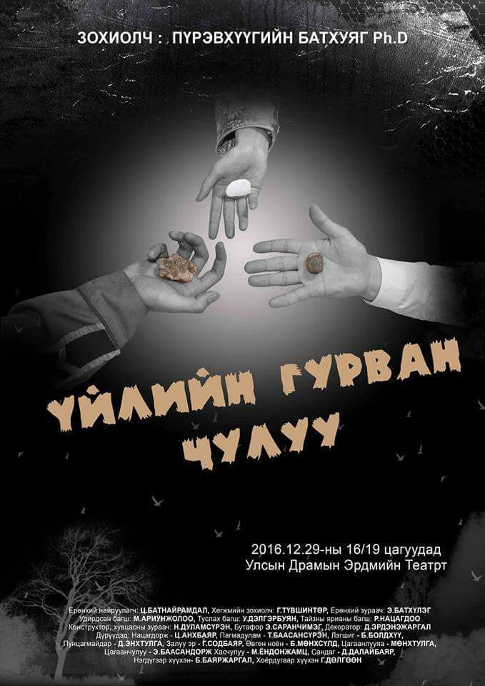 Зохиолч П.Батхуягийн бичсэн Д.Нацагдоржийн тухай "Үйлийн гурван чулуу" эмгэнэлт драмын жүжиг 2016 оны 12 сарын 29-ний өдөр УДЭТ-ын тайзнаа 16:00 болон 19:00 цагуудад тоглогдох гэж байна. Уг жүжгийн ерөнхий найруулагчаар Ц.Батнайрамдал ажиллажээ.