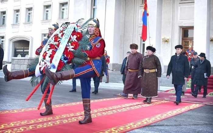 Цэцэг өргөх ёслолд УИХ, Засгийн газрын гишүүдийн төлөөлөл оролцлоо. Ёслолын үеэр Төрийн ордны хойд голын Соёмбот хаалганд Төрийн далбаа мандуулан хүндэт харуул жагсч, үлээвэр найрал хөгжимд Төрийн дуулал, хүндэтгэлийн марш эгшиглүүлэв.