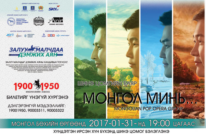 Аяны хүрээнд “Увертюра” хамтлагийн “Монгол минь...” нэртэй цомгийн баяр хандивын тоглолтын нээлтийг Улаанбаатар хотод энэ сарын 31-нд Бөхийн өргөөнд хийх юм. Тоглолтын тасалбарыг “Монгол минь...” шинэ цомог дагалдах юм. Энэ тоглолтоо хоёрдугаар сарын 9-нөөс эхлэн зүүн бүсийн найман аймаг, нэг дүүрэг, баруун бүсийн 13 аймагт хийнэ. Тоглолтын ашиг, орлогоо мал болгож залуу малчин гэр бүлд хандивлахаар болсон.