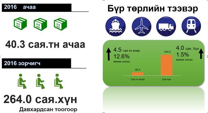 Туршилтын тээвэрлэлтийг зохион байгуулах ажлын хүрээнд тасалбар түгээх автомат машин турших, Улаанбаатар – Сэлэнгэ аймгийн Сүхбаатар сум–Улаан-Үүд чиглэлд төмөр замын тээвэр, автотээврийн төрлүүдээр хамтарсан туршилтын тээвэрлэлтийг зохион байгуулсан бөгөөд 2017 оноос тогтмол үйлчилгээ үзүүлэхээр төлөвлөж байна.