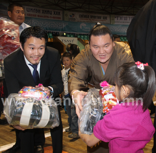Монголын спортын хүчтэнүүд нэг дор цугларч Монголын хүүхэд багачуудад гарын бэлгээ гардуулсан юм. Энэ жилийн хүүхдийн баярын зуны салхийг хагалж мөн дээрээс нь энэ ын хамгийн анхны шоу тоглолтыг манай алдар цолтой бөхчүүд эхлүүлсэн юм. Монголдоо төдийгүй Дэлхийд эх орныхоо нэрийг гаргаж яваа энэ цагийн алдарт хүчтэнүүд маань Бөхийн өргөөнд хүүхэд багачуудын дунд инээд хөөрөөр дүүрэн бэлгээ гардуулж Монголын үрсүүдээ баярлууллаа. Монголын алдарт хүчтэнүүдээс бэлэг авч байгаа хүүхдүүд азтай ч юм нөгөө талаас тэдэн дунд ирээдүйн хүчтэнүүд байгаа гэж найдаж байна гэж манай алдартнууд хэлсэн юм. Монголын үрс маш олон болж Дэлхийд эх орныхоо нэрийг гаргаарай гэж ерөөе.