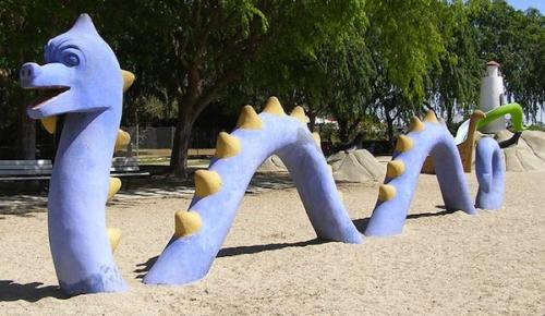 7. Калифорн мужийн Сан Габриелд орших Ла Лагуна тоглоомын талбайд цементэн 14 том мангасын баримал бий. Мексикийн уран бүтээлч Бенжамин Домингиз 2006 онд энэ газрыг шинэчлэн дахин нээсэн байна.