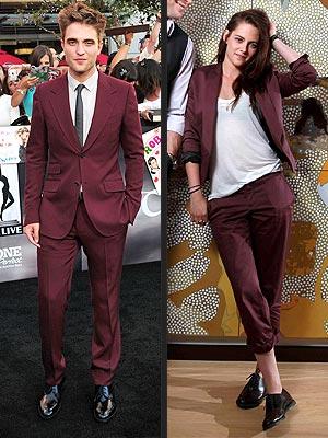 Та бүхэн хоёр жилийн өмнө жүжигчин Роберт Патинсоны The Twilight Saga: Eclipse киноны Лос-Анжелос хот дахь нээлтийн үеийн зургийг харж байна. Түүнийг Gucci-гийн нил өнгөтэй энэ хослолыг өмсөөд улаан хивсэн дээгүүр алхан өнгөрөх зуур хэдэн зуун эмэгтэй сэтгэл хөдлөлөө барьж дийлэлгүй орилж байсан сан.Тэгвэл тэр өдрөөс хоёр жилийн дараа нэг киноны анд Кристен Стюарт мягмар гарагт Австралийн Сидней хотод “Цасан цагаан, анчин 2” кинонд зориулсан зураг авалтанд оролцохдоо яг ижилхэн хослол сонгосон байна. Стюартыг найз залуугийнхаа хувцасны шүүгээг ухаа юу даа гэмээр энэ хослол үнэндээ Chaiken-ийнх. Энэ оны хамгийн өндөр орлоготой залуу жүжигчин Стюарт энгийн хүзүүний зүүлт, BaubleBar-ын бугуйвч, гялгар гутлаар хослолоо тодруулсан байна.