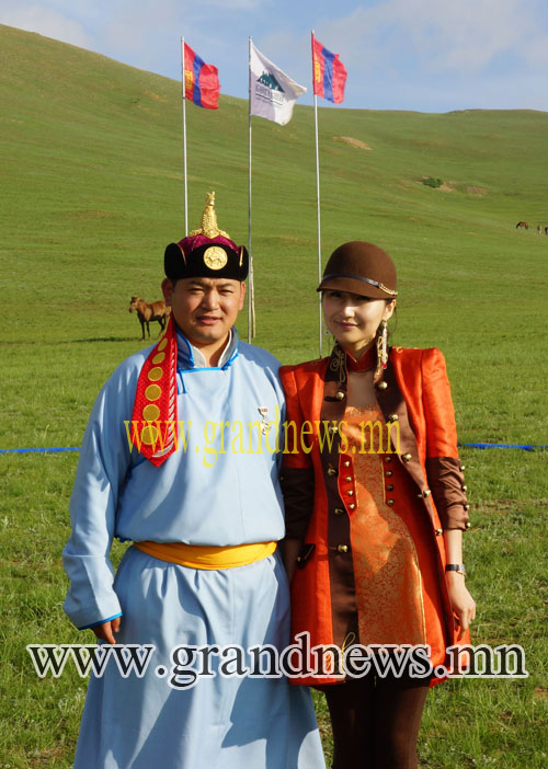 Хурдан хүлгийн хиймориор хэрэв эр хүний лундаа, ёндоог хэмжиж болдог бол “Алтай констракшн”-ын Х.Бат-Эрдэнэ шиг одтой, хийморьтой аавын хүү халхын хавтгайд хуруу дарам цөөхөн. Өнгөрсөн жилийн наадмаар бөх нь начин хийсэн бол энэ жил хоёр айрагтай наадлаа. Тодруулбал, хүрэн морь нь их насанд тод манлай, торгон жолоо атгуулсан бол соёолон насанд хурдан хонгор үрээ нь аман хүзүүнд давхисан юм. Ер нь морьчид түүнийг босоо хийморьтой эр хэмээн ам сайтай байдаг нь аргагүй бололтой. Энэ жил тэрээр уяан дээрээсээ чонын шагай, шашны бололтой эртний ховор эд олсон нь яавч энгийн явдал бус, цаанаа утга учиртай, хийморь юуг нь илтгэсэн хэрэг боллоо хэмээн учир мэдэх хүмүүс тун ч их билэгшээж байгаа аж. Ийн хийж буй ажил, бизнес, хурдан хүлэг гээд юм бүхнээрээ тэнгэртэй аавын хүү гэдгээ харуулдаг ноён Х.Бат-Эрдэнэд хийморь, ёндоог чухалчилдаг уяач эрхмүүд тун ч тал сайтай байдаг гэнэ лээ. Монголын анхны морин спортын мастер ээжийн хүү тэрээр гуч дөнгөж гарсан насандаа амжилт дагуулж, барилга бүтээн байгуулалтын салбарт орон зайгаа дархалсан манай цуутай залуу бизнесмэнүүдийн нэг. Хөлс хөдөлмөрөө урсган байж бүтээн байгуулалтын салбараас бор зүрхээрээ баялгаа босгосных эдийн дээдийг эдэлж, хүний сайнтай нөхөрлөж, хүүхний сайхантай ханилсан ноён Х.Бат-Эрдэнийн гэргий Т.Наранчимэг хэмээх үзэсгэлэн төгс бүсгүй жил жилийн наадмаар дээдсийн хүүхнүүдийн дэгжин гоёлыг тодорхойлж ирсэн уламжлалтай. Энэ жилийн тухайд Т.Наранчимэг хатагтай улбар шар өнгийг эрхэмлэсэн байна. Хул шаргал торгоор цэрэг загварыг үндэсний хэв маягтай чадамгай хослуулж, морины бор малгай өмссөн нь энэ хатагтайн хэр мэдрэмж, вкустэйг харуулж байна. Дан даашинз дээр ууж өмссөн ч гэлээ энгийн, орчин үеийн, нүсэр биш харагдаж байна.