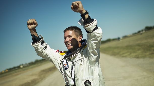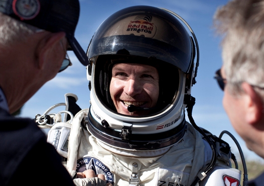 “Дэлхийн оргил” дээр зогсож байна гэдгээ мэдрэх нь хамгийн сайхан агшин юм” гэж тэр дурджээ. Тэр гар нийлэн ажилласан багийнхандаа, хүлээц тэвчээртэй байж, дэмжлэг үзүүлсэн гэр бүлийнхэндээ талархал илэрхийлсэн байна. Тамирчин цаашдын төлөвлөгөөний тухай ярихдаа, “өөрийн туршлагыг хойч үеийнхэнд эзэмшүүлж, Жо Киттингер шиг дэлхийн аваргуудыг төрүүлэхийг хүсч байна” гэжээ. Маш нимгэн материалаар хийсэн бөгөөд 850 мянга шоо метр гелийн хий шахсан Баумгартнерын давхраа мандлын бөмбөлөг орон нутгийн цагаар өглөөний 08.30-д хөөрч, хүрэх ёстой өндөрт хоёр цаг орчмын дараа гарсан. Дүүжин бүхээгээс гарах нэлээд сэтгэл догдлуулсан бэлтгэл ажил, даралт, багаж хэрэгслийн хэмжилт, шалгалт барагцаалбал 30 минут үргэлжилсэн. Үсрэлт туйлын амжилттай болсон ба тамирчны биеийн байдлыг одоогоор багийн эмч онцсайн гэж үзжээ.