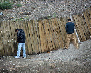 Тэгтэл бид хоёрын нүдэнд сарзгар муу модон хашаагаа гаднаас нь будаж буй хэсэг хүн өртлөө.