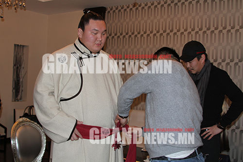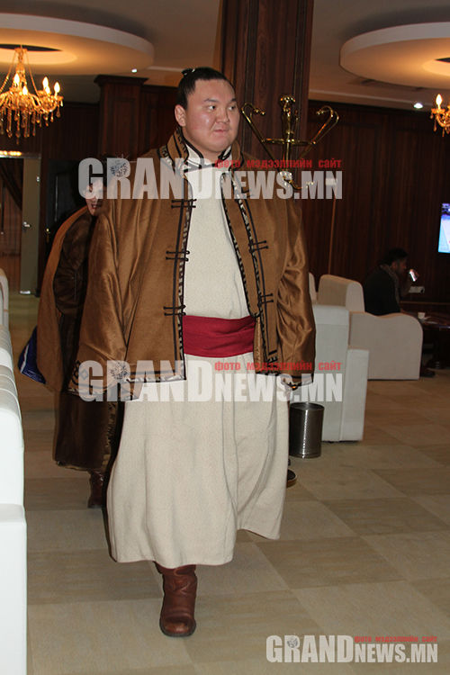 Онгоцноос буухдаа сумогийнхоо хувцастай ирсэн Хакухо маань Монголчуудтайгаа уулзахдаа үндэснийхээ хувцасаар сольсон нь энэ.