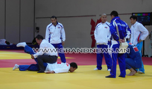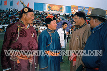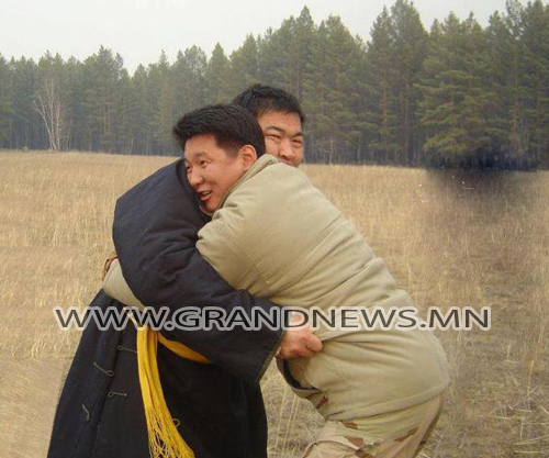 УИХ-ын гишүүн, дархан аварга Б.Бат-Эрдэнэ, экс гишүүн У.Хүрэлсүх нар барилдаж буй нь