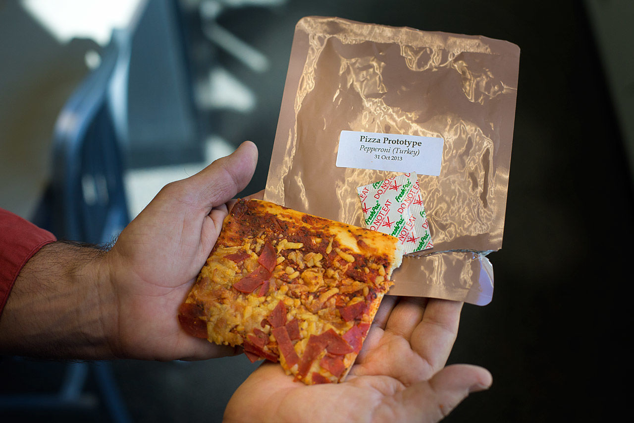 АНУ-ын эрдэмтэд хэвийн нөхцөлд гурван жил хадгалахад мууддаггүй пицца бүтээжээ. Тэд энэ бүтээгдэхүүнээ онц аюултай, хүнд нөхцөлд үүрэг гүйцэтгэж буй зэвсэгт хүчний алба хаагчдад зориулсан аж. Албан үүргээ гүйцэтгэж буй цэргүүдээс хоол хүнсний тухай санал асуулга авахад пицца идэх хүсэлт хамгийн олон иржээ. Гэтэл пицца нь амархан мууддаг төдийгүй цэргийн баазад хийхэд тохиромжгүй юм. Тиймээс эрдэмтэд цүнхэндээ аваад явчих, удаан хадгалах боломжтой пицца хийхээр ажилласан байна. Тэд пиццаны гурилыг жигнэж, махыгнь хатаасан бөгөөд гол асуудал нь сүмсийг хэрхэн бэлтгэх байжээ. Тиймээс бяслаг, чинжүү, мөөг зэргийг тусгай орлуулагчаар нөхсөн байна. Мөн бактери үрждэггүй уутанд хадгалах аж. Эрдэмтэд хүний биед сөрөг нөлөөгүй хэмээж буй уг хоолыг цэргийнхэн амтархан идээд сэтгэл хангалуун байгаагаа илэрхийлжээ.