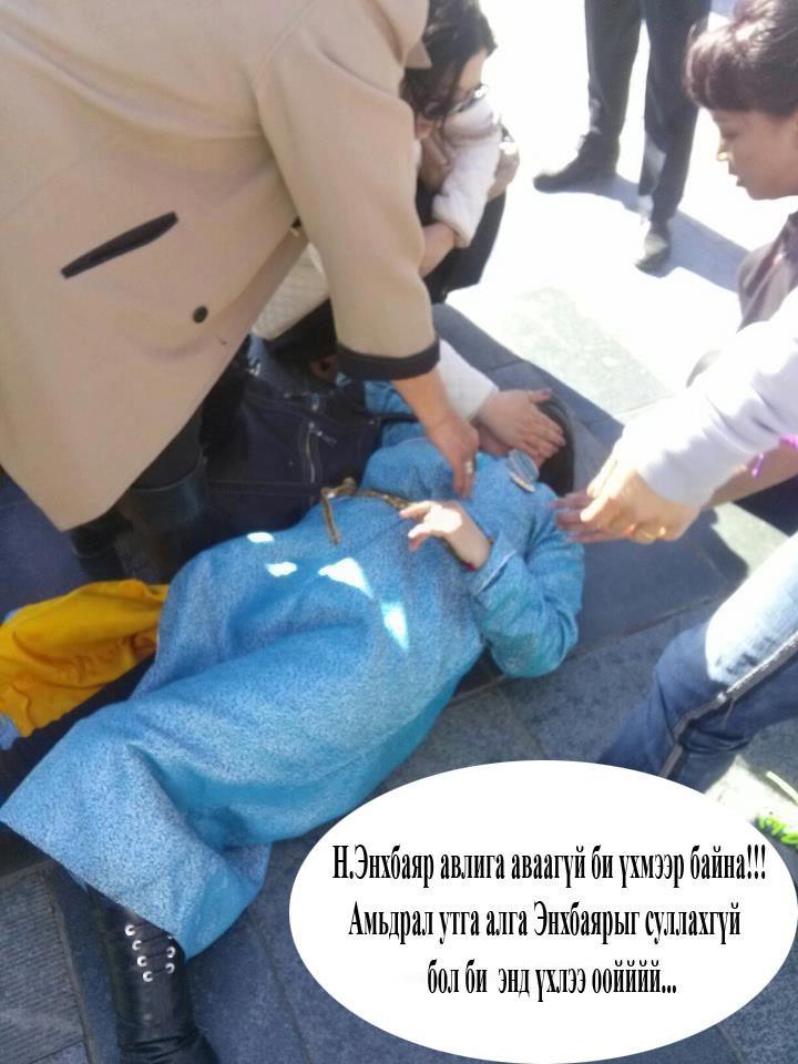 Өвчний учир чөлөөлөгдөх хүсэлт гаргасан Монгол улсын экс Ерөнхийлөгч Н.Энхбаярыг суллахгүй бол үхэхийг завдсан энэ эмээ ийн хэлсэн байна. “Н.Энхбаяр авилга аваагүй. Би үхмээр байна. амьдрал утга алга. Н.Энхбаярыг суллахгүй бол би эндээ үхлээ” хэмээн уйлж ойр тойрныхоныгоо сандаргасан байна. Н.Энхбаяр суллах хүсэлтийг холбогдох байгууллагад өргөдөлийн хамтаар тавиад байгаа билээ. Харин түүнийг дэмждэг ард түмэн нь түүнийг баривчлагдаад явснаас хойш янз бүрийн арга хэрэглэж эцэс сүүлдээ үхэхийг ч хүртэл завдаад байна. Н.Энхбаярын өмнөөс үхнэ