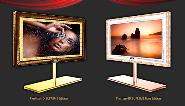 Их Британий гоёл чимэглэлийн мастер Стюарт Хьюсийн удаах нэгэн алдарт бүтээгдэхүүн болох. “PrestigeHD Supreme Rose” Дэлхий дээр ердөө гурван ширхэг үйлдвэрлэгдсэн 55 инч бөгөөд хүрээ 28 кг алт бөгөөд матрын арьс болон бусад эрдэнийн чулуугаар урлажээ.