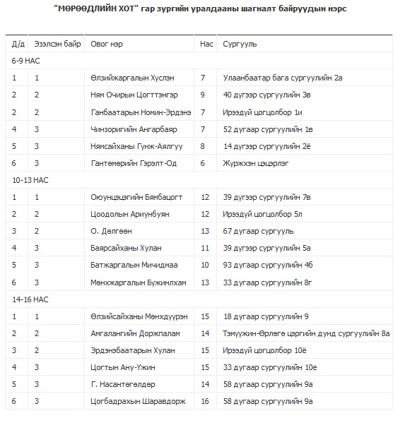 гудамж” 10-13 нас, “Миний мөрөөдлийн цэцэрлэгт хүрээлэн” 14-16 насны 3