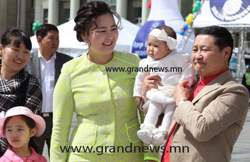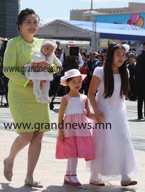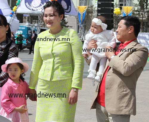 Сүхбаатарын талбайд зургадугаар сарын 1-нд болсон 900 хүүхдийн флэш моб арга хэмжээнд Монгол Улсын Ерөнхий сайд Н.Алтанхуяг гэр бүлийнхнийхээ хамтаар зочиллоо. Нэг хүү, зургаан охинтой Ерөнхий сайд Сүхбаатарын талбайд бяцхан “гүнж”-ээ авчирсан нь олны харааг булаав. Тавхан сартай бяцхан охин болон хоёр гүнжээ ч мөн танилцуулаад авлаа. Өчигдөр тэрээр эгчийнхээ хамтаар Төрийн ордонтой танилцсан хамгийн бяцхан үзэгч байсан бол өнөөдөр олон нийтийн өмнө ил гарч, хүүхдийн баяраа тэмдэглэж байгаа нь энэ. Ийнхүү сайдын гүнжүүд болон Монголын бяцхан үрс маань баяраа халуун дотно тэмдэглэн өнгөрүүллээ. Монголын үрс маш олон болтугай.