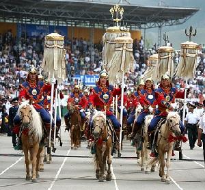 9.30 Төрийн есөн хөлт цагаан тугийг Төрийн ордноос Төв цэнгэлдэх хүрээлэнрүү залах ёслол