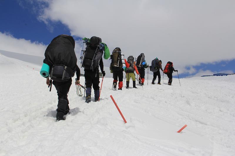 “Бочек /3780м/”-ноос Пастуховын хадны доод/4100м/, дээд/4750м/ хэсэг хүртэл өгсөж, буцаж “Бочек”-тоо ирж хоноглосоор өндрийн бэлтгэлээ чамбайруулсан ба төлөвлөгөө ёсоор дахин өгсөж 5000м-т хүрэх байсан хэдий ч цаг агаарын байдлаас шалтгаалж бэлтгэлээ нэг өдрөөр урагшлуулж тэнгэр муудахаас өмнө өрсөх шаардлагатай болсон юм.