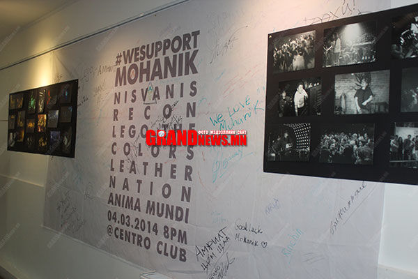 Моханикийн цомгийн нээлт “Glamour Art Gallery”-д өнөөдөр нээлтээ хийлээ. Галлерейн үүдээр оруут Моханик хамтлагийн анхны цомог угтаж улаан утаснаас залгаатай хамтлагийнхантай холбоотой дурсамж өгүүлэх зурагнууд өлгөөстэй.
