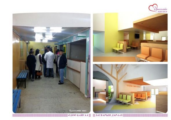 Өдөрт 585 өвчтөн, аав ээж, асран хамгаалагч нарын хамт нийт 700 гаруй хүн үйлчлүүлдэг энэхүү хүлээлгийн танхим тун удахгүй сайхан сэтгэлт олон хүний хамтын хөдөлмөрөөр цэвэрхэн, тохь тухтай, илүү хүртээмжтэй болж шинэчлэгдэх юм.