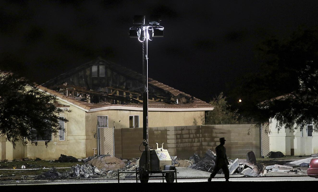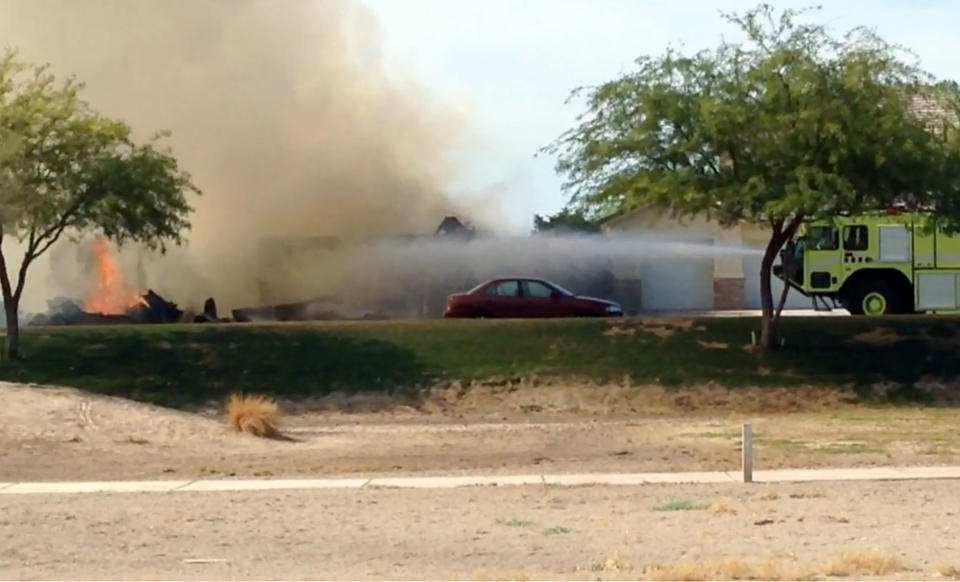 Өмнөд Калифорниад нисэх хүчний тийрэлтэт онгоц осолдож газарт дэлбэрэн ойр байсан хоёр байшинг галд автуулжээ. Онгоцны нисгэгч автоматаар онгоцноосоо шидэгдэж аюулгүй үлдсэн бөгөөд газарт болсон дэлбэрэлтийн үеэр ямар нэг хүн бэртэл гэмтэл аваагүй байна.