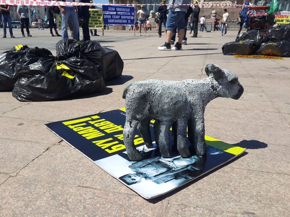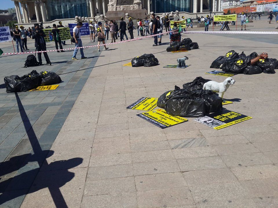 Энэ бол цөмийн хог хаягдлыг эсэргүүцэж байгаа иргэний нийгмийн байгууллагынхны эсэргүүцлийн тайван цуглаан зохион байгуулагсдын хэлээд ойшоохгүй байгаа бодит байдлыг төр, захиргааныханд дахин ойлгуулах гэсэн илэрхийлэл юм байна. Францын “Арева” компани Дорноговь аймгийн Улаанбадрах суманд туршилтын олборлолт хийснээс хойш нутгийн иргэдийн мал үхэж, хээл хаяж, гажиг хөгжилтэй төл төрөх болсон. Газар дээр нь ажиллаад ирсэн Гамшгийн эсрэг үндэсний төвийн ерөнхий зохицуулагч Ж.Ганбаатарын хэлснээр бол өдгөө зөвхөн албан ёсоор бүртгэгдсэнээр бол анх 2012 оны арванхоёрдугаар сарын 28-нд 22 тугал үхсэн бол өдгөө Зүүнбаян суманд 214, Улаанбадрахад 289 мал үхээд байгаа. Гэхдээ албан ёсоор бүртгүүлээгүй үхэл, хорогдол ч маш их байгаа аж.
