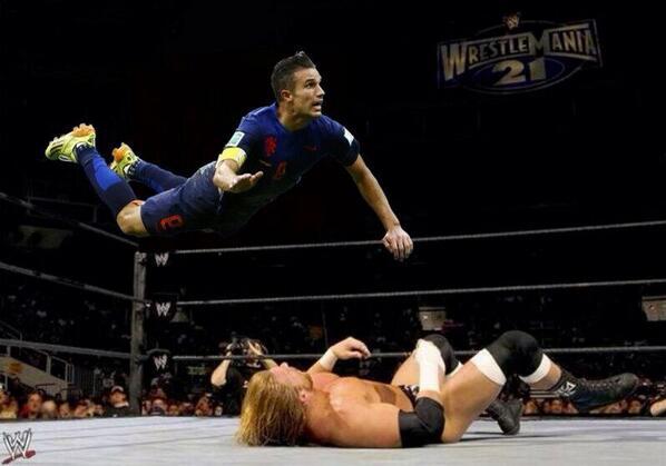 Өнгөрсөн шөнө дэлхийн аваргын ээлжит тоглолт Испани болон Голландын шигшээн хооронд болж Голландын шигшээ "Ялагдашгүй Армада" -чуудыг 1:5 харьцаатай бут ниргэн 2010 оны хариугаа авсан. Энэ тоглолтонд Голландын багийн ахлагч, Манчестер Юнайтад багын довтлогч Робин Ван Перси нэгэн гоёмсог гоолыг мөргөж оруулсан. Хойноос өгсөн дамжуулалтыг агаар дээр нисэлттэй мөргөж хаалгачийг давуулан гоол оруулсан энэхүү агшнийг интернетийн шогч хэрэглэгчид маань андалгүй ашиглаж хөгжилтэй байдлаар зургийг засварлан твиттерт байршуулсан байна.