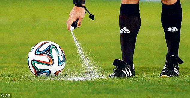 Тоглолтын үед та бидний анхаарлыг татсан нэг зүйл бол шүүгчдийн хэрэглэж буй шүршдэг хөөс. Энэхүү хөөс нь хэсэг хугацааны дараа уусч алга болдог бөгөөд шүүгчид тусгай халаас бүхий бүс зүүж түүндээ хөөсөө авч явах гэнэ. Уг хөөсийг торгуулийн цохилт цохих үед бөмбөгний байрлал болон эсрэг багийн хаалт хоёрын байрлалыг тэмдгэлэхийн тулд ашиглах ажээ.