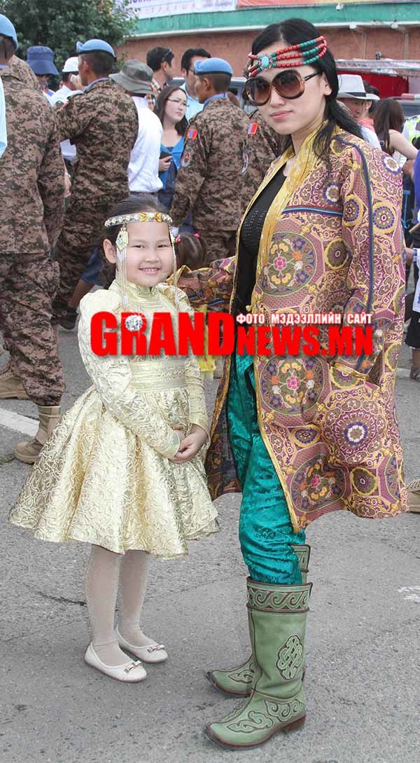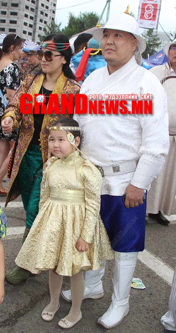 Жил жилийн наадмаар үндэснийхээ дээл хувцасаар гангарч гэр бүлээрээ наадамладаг дуучин Т.Дэлгэрмөрөн өнгөрсөн жилийнхээ хантааз, гутлаар дахин гоёсон харагдана. Харин гэргий Д.Энхбадам буюу Жулиана нь Д.Зөөлөнсий охинтойгоо тун донжтой хувцаслаж ирсэн байна шүү.