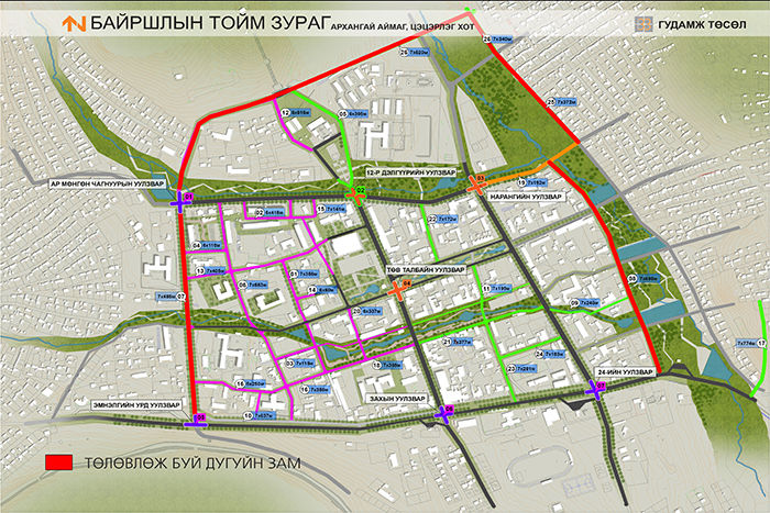 Засгийн газрын 96 дугаар тогтоолын дагуу “Гудамж” төслийг энэ жилээс аймгийн төвүүдэд хэрэгжүүлэхээр болсон. Энэ шийдвэрийн дагуу Архангай аймгийн төвийн авто зам, уулзваруудыг өргөтгөн шинэчлэх ажил хийгдэж эхэлсэн. Ингэхдээ аймгийн төвийн авто замын гадна тойргийн дагуу 2.8 км дугуйн зам төлөвлөн гүйцэтгэж байгаа юм.