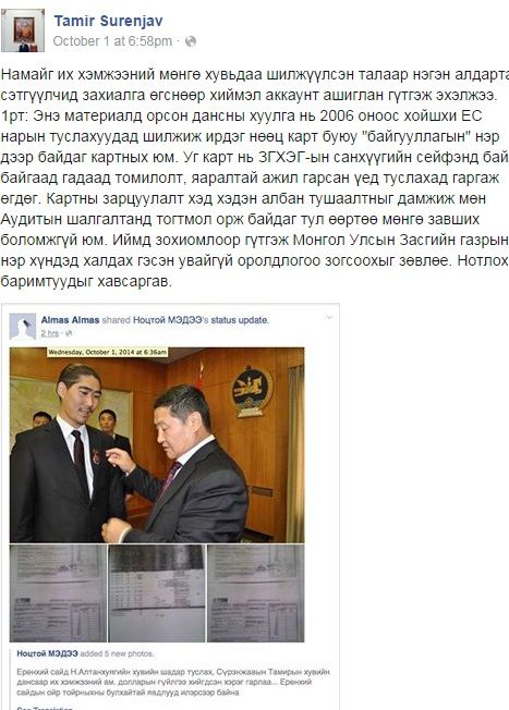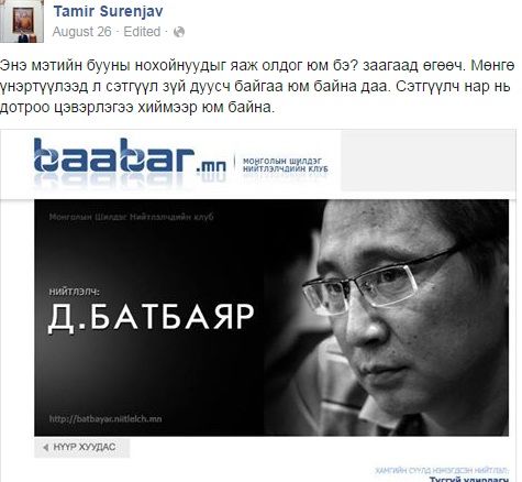 Гадаадын кинон дээр л гардаг “гар хөл”-үүд манайд ер нь байдаг уу? Байсан ч бид анзаараагүй, эсвэл баригддаггүй байж болно. “Задгай цагаан” хочит Н.Алтанхуяг засгийг толгойлж байгаа энэ үед нэг “гар хөл” ил болох шиг. Тэрбээр сайдын талаар нийтлэл бичсэн нийтлэлч Д.Батбаярыг заналхийлэн фэйсбүүктээ пост хийж даргыгаа нам өмөөрөв.