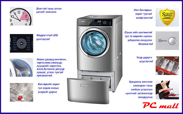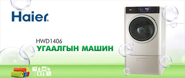 Одоо манайхаас Haier HWD 1406 бүрэн автомат угаалгын машиныг онцолж байгаа. Энэхүү угаалгын машин нь ионжуулагчтай, хатаагчтай, үнэр дарагчтай гээд олон давуу талтай. Угаалгын нунтагаа өөрөө автоматаар тохируулна. Ноос, ноолуур угаах, дотуур хувцас угаах зэрэг 16 төрлийн тусгай програмтай. Үүнээс гадна та өөрөө угаах горимоо сануулах боломжтой. LED мэдрэгчтэй дэлгэцтэй.